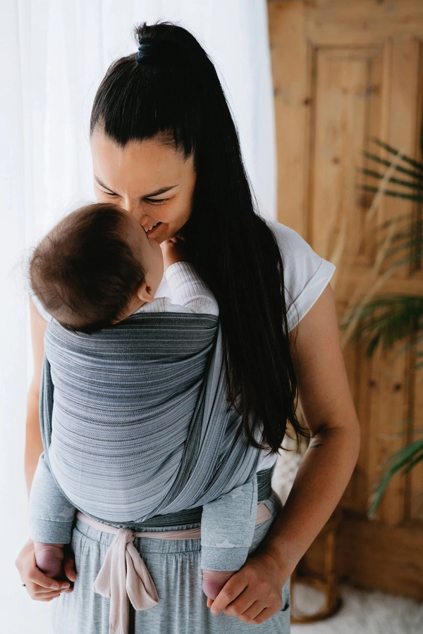 TAGI: noszenie dziecka, noszenie noworodka, chusta dla noworodka, chusta dla niemowlaka, wyprawka dla noworodka, prezent dla noworodka, szara chusta do noszenia dziecka, chusta ze spolotem skośno-krzyżowym, splot skośno-krzyżowy, chusta tkana, chusta wiązana