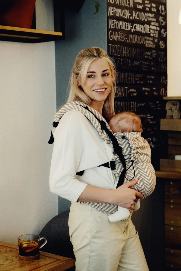 - Stylowy beżowy wzór geometryczny oraz komfortowe rozwiązania zapewniają wygodę i bezpieczeństwo podczas noszenia. Wybierz polską jakość i niezawodność dla Ciebie i Twojego dziecka.